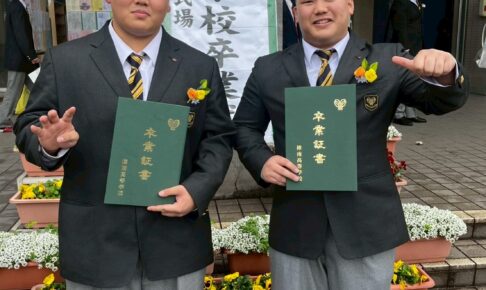 お知らせ記事 令和7年度 卒業式 2026.03.05 syonan-sumou-takahiro 皆様いつも応援ありがとうございます。 3月2日(月)は樟南高校の卒業式でした。 相撲部からは2名の卒業生となります。 卒業式の堂々とした立ち振る舞いやその後のクラスでの言葉を聞くと本当に立派に成長しました。 1人目の泉洸…